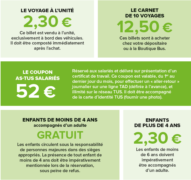 Pour les lignes TAD 1, 6A, 6B, 7, 13, découvrez les titres et tarifs ci-dessous :